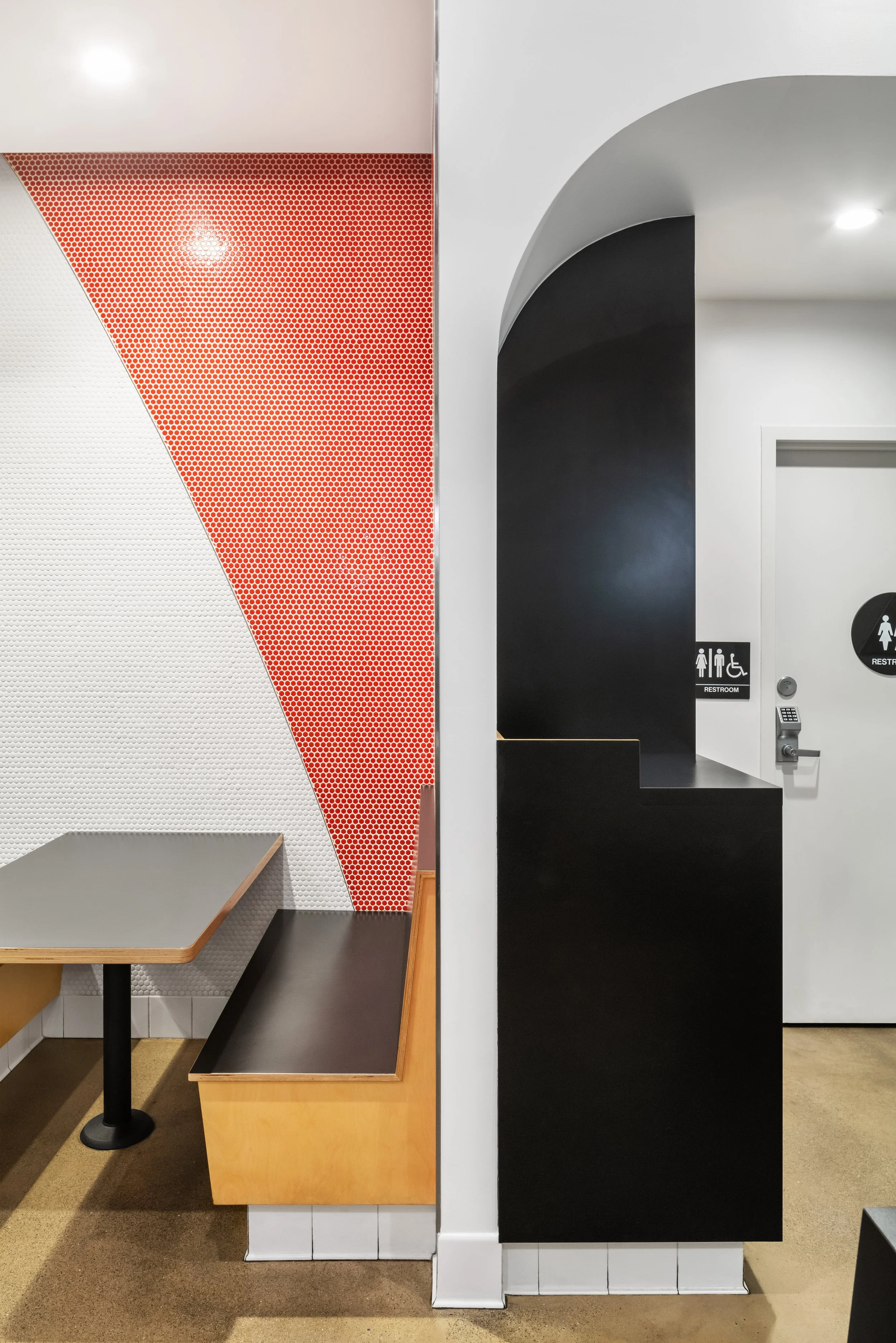 When paired with the Bobo's bright red, the structure is impossible to miss from the road. This project contemporizes the brand's cultural significance and plays with L.A.'s architectural language, acknowledging unique styles such as the Googie designs that are emblematic of L.A.'s fast-food history.